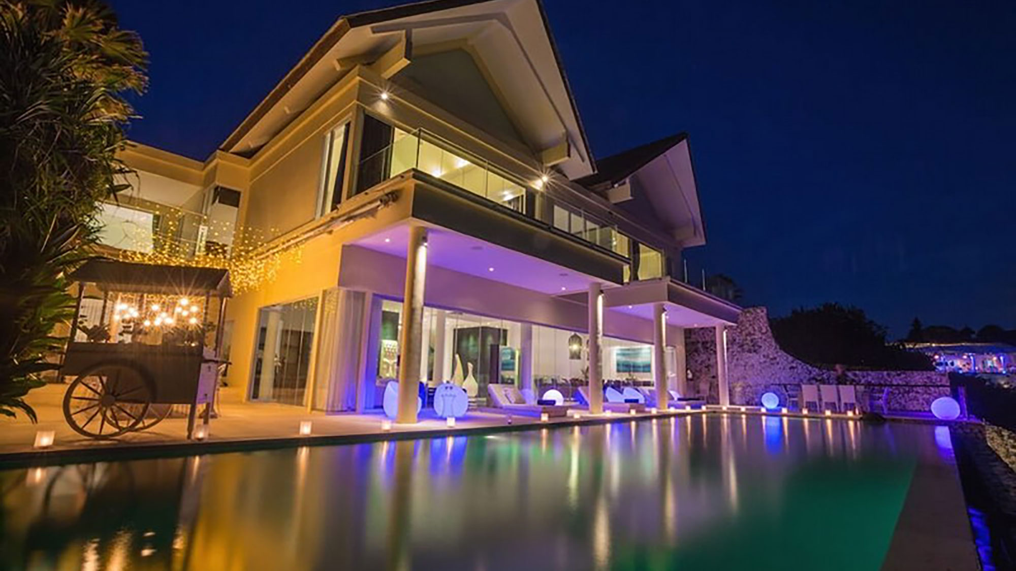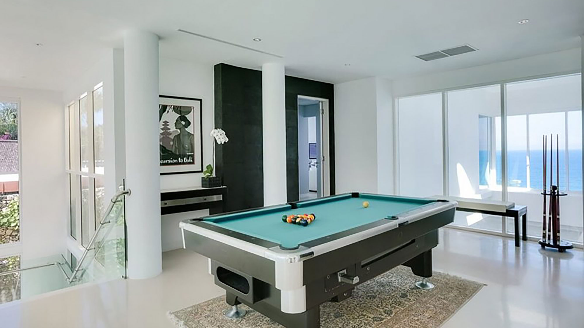 Grand Cliff Ungasan – Three-storey Villa Grand Cliff Ungasan comprises five ensuite bedrooms, terraces and balconies, a cinema room, 20-metre pool, and jacuzzi deck. The villa is entered via its middle floor, which is also home to a large living/dining room with a bar, and to the pool and pool deck. The two master suites and one guest room are on the top floor. Two more bedrooms and the home cinema can be found on the lower level, which is also home to an open-air jacuzzi tub, a furnished timber deck, and a large relaxation gazebo.