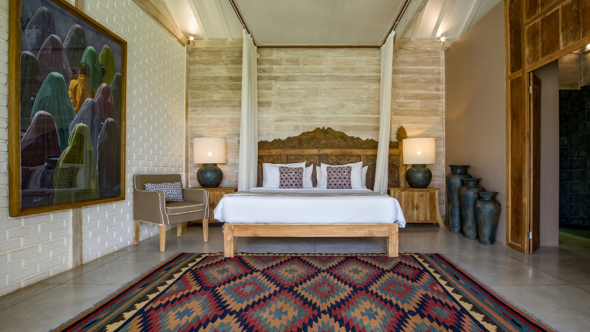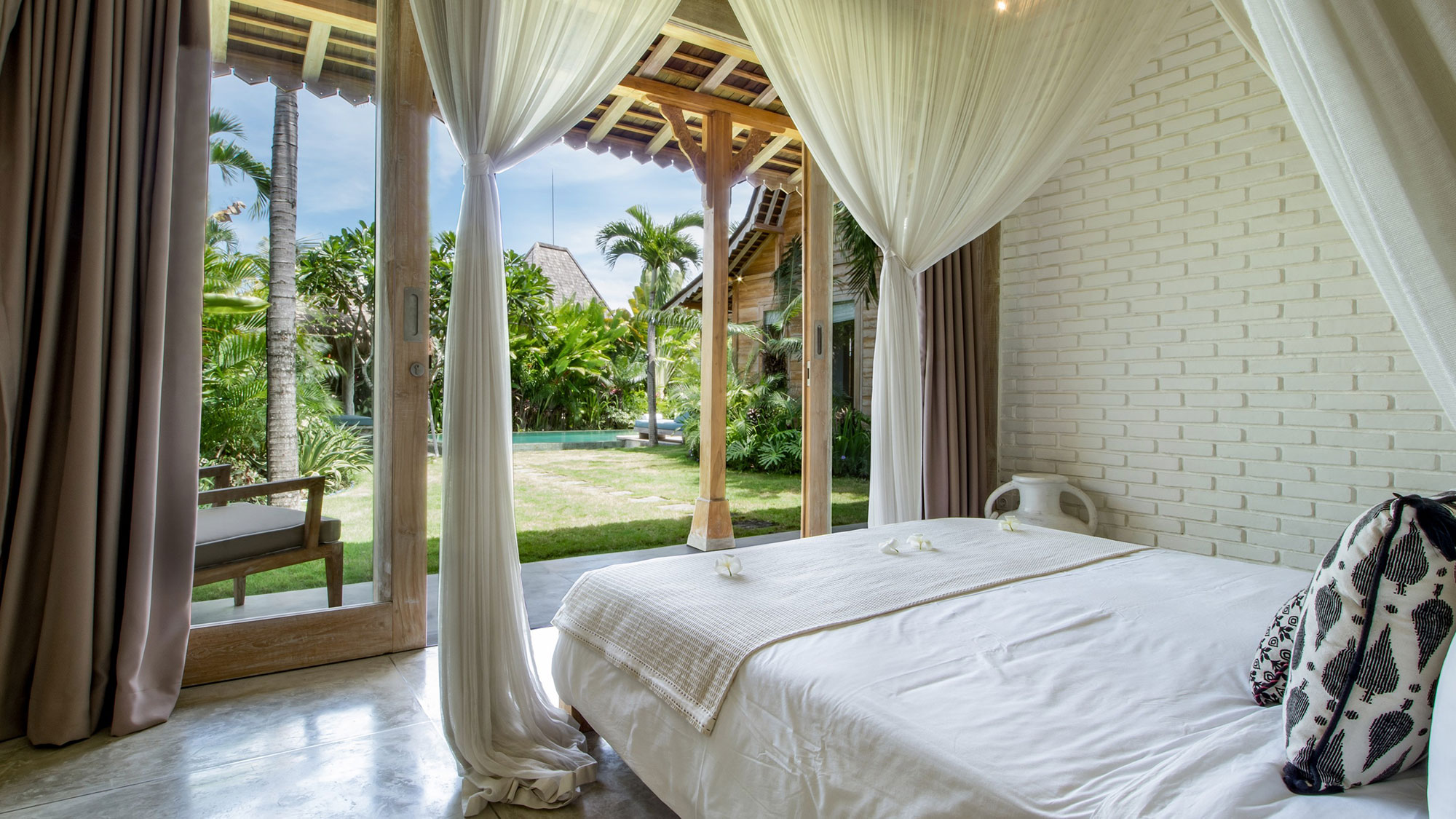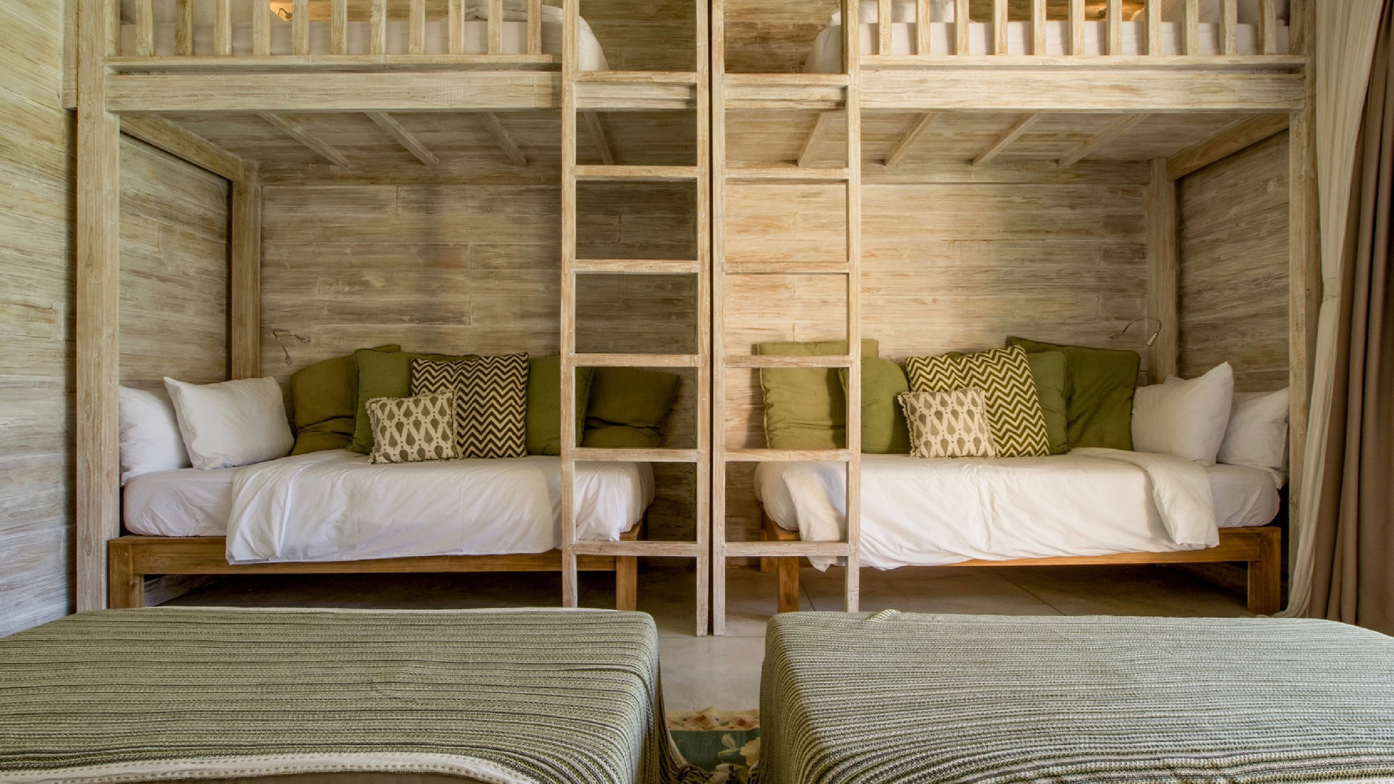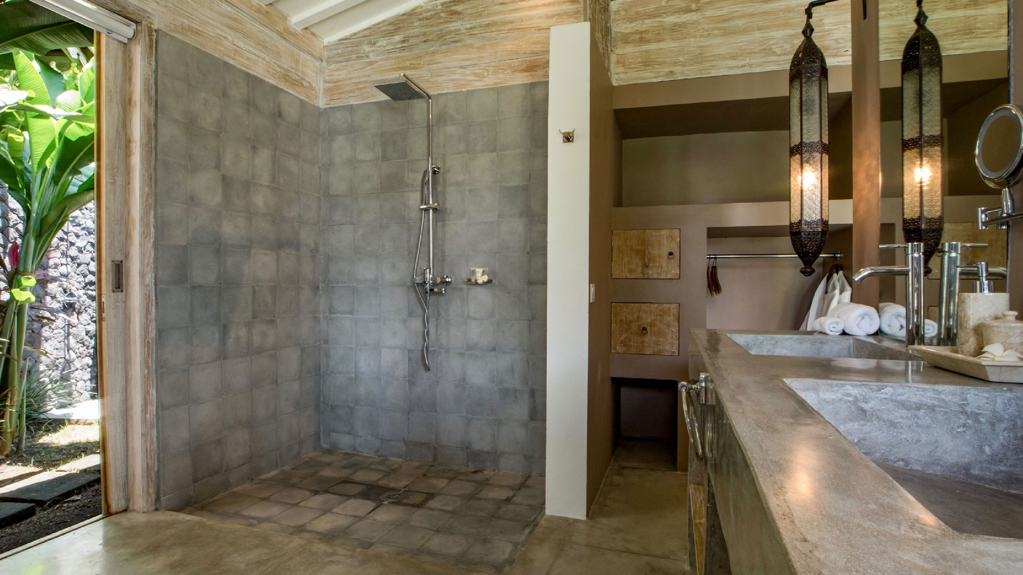 The two opulent master suites are tucked in spacious private Joglo's and they have been designed with families in mind as they both are interconnected to a cosy kids room with twin beds. The master rooms come with deluxe king-size beds and wonderful private en-suites with large bathtubs to soak in and alfresco showers beneath Bali's clear blue or starry sky.