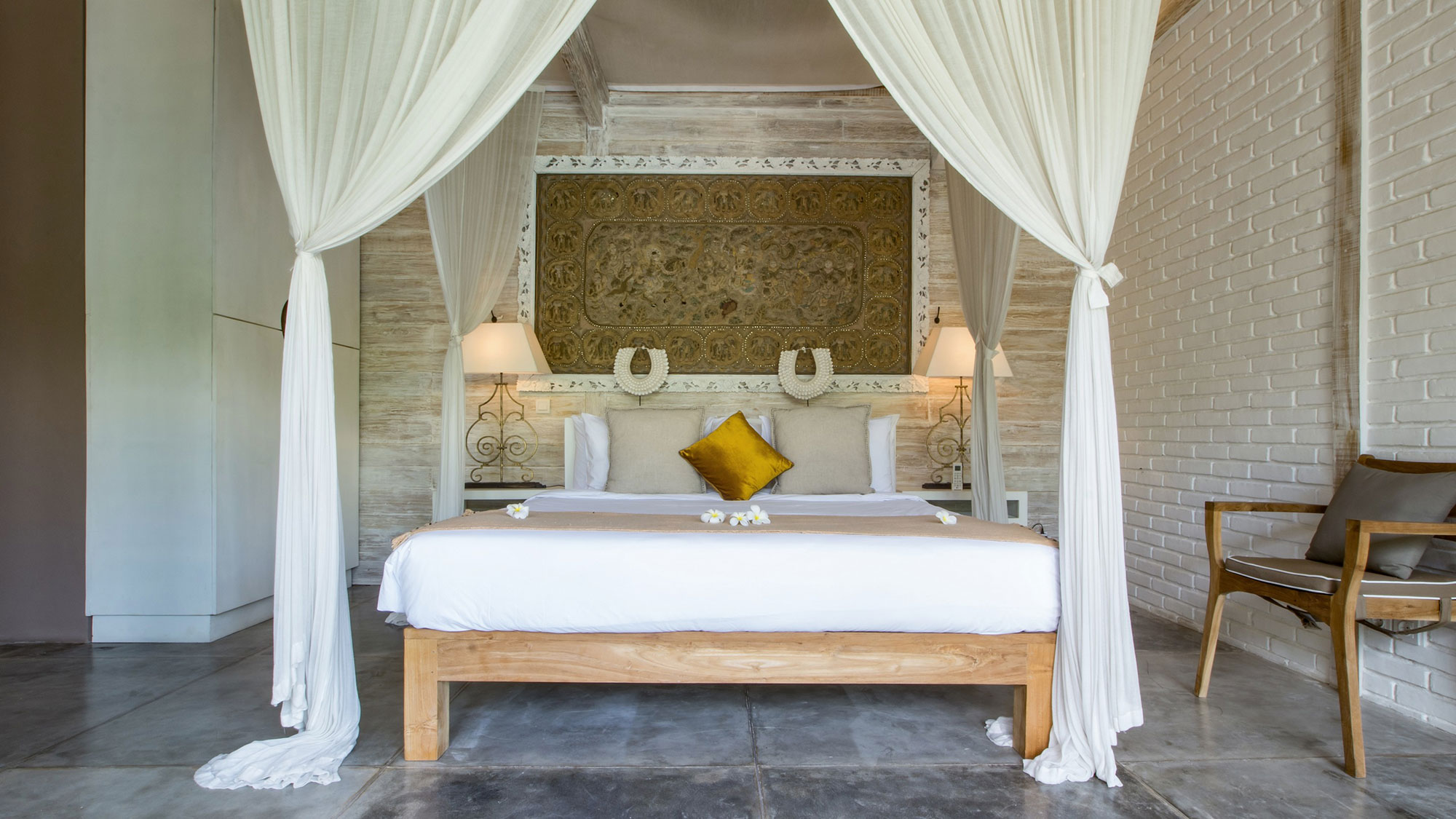 The Mannao Estate features modern tropical architecture inspired by the traditional 'Joglo house' descendent from Bali's neighboring island Java. These all-wooden pavilions, with their signature high vaulted rooftops, are scattered all around the property, housing the multiple living and dining areas as well as the 12 bedrooms. The interior designs can be defined as tropical chic, ruled by local timber, elegant white fabrics and ethic artwork. The Mannao Estate offers an abundance of open-plan communal living areas for lounging and dining altogether with your loved ones and for those seeking some peace of mind, there are also lots of more intimate corners to snooze or read a book before a wonderful garden BBQ party or a sophisticated in-villa meal at one of the elegant formal dining rooms starts.
